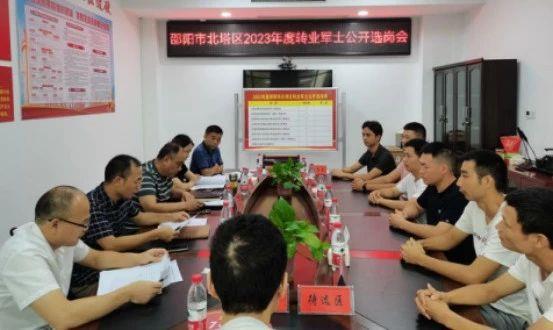 为将继续发扬军人的优良作风,做到“退役不褪色,转岗不转志”,以实际行动为地方经济社会发展贡献力量,公开透明、阳光安置。8月25日上午,邵阳市北塔区召开2023年度转业士官公开选岗会议,区政府办、区编办、区人社局、区纪委监委派驻区政府办监察组、区退役军人事务局等单位负责人和有关工作人员及待安置的6名转业军士参加了选岗会议。