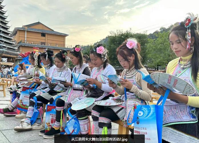 八五”普法开展以来,从江县深入学习贯彻习近平法治思想,推动全民普法常态化、规范化。为进一步增强和美城乡法治教育普及行动的趣味性和生动性。从江县推出都柳江文化走廊乡村周末大舞台文艺演出,将法治宣传与文艺节目相融合,寓教于乐,潜移默化地向广大群众传播法治精神。