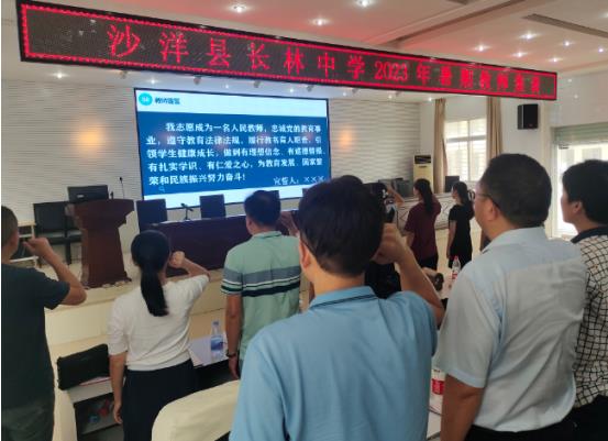 金秋送爽开学季,奋楫扬帆正当时。为进一步加强教师队伍建设,提高教师队伍素质和业务水平,适应教学改革与发展的需要,根据沙洋县教育局关于2023年暑期教师集训活动的通知,8月26-29日,湖北荆门市沙洋县长林中学开展了教师职业道德培养、相关法律法规文件学习等内容的暑期教师集训培训,全体教师积极参训,认真学习,收获满满。