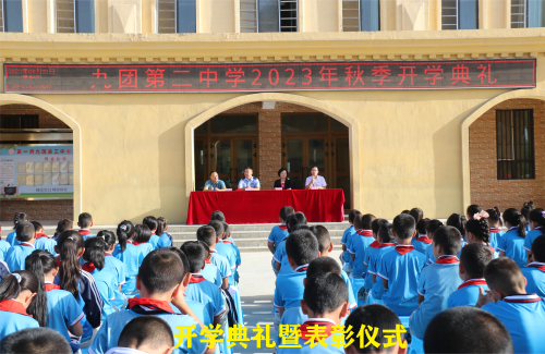 未觉三夏尽,时序已新秋。2023年8月31日上午,九团第二中学在学校小学楼前隆重集会,举行了2023年秋季开学典礼。兵团纪委监委驻喀尔墩村第一书记冉文莲同志、塔北派出所所长刘成志同志及1200名师生出席此次典礼。
