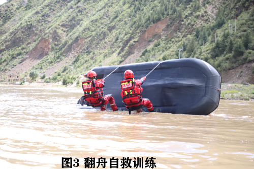 “在激流救援时,入水方式和泳姿很重要,平跳式入水可以有效防止河水进入口鼻,但是动作一定要标准才有效……”针对部分消防员在水中呛水情况,教练员德西占堆及时组织全体消防员畅谈体会,为大家解疑释惑、传授技巧。