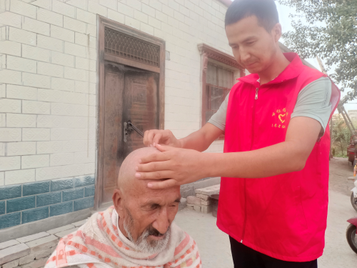 党员干部们还帮助结对亲戚及困难群众采收核桃、打扫庭院卫生等,同时邀请到志愿者到老人家里提供上门理发服务,理发期间党员干部在一旁陪老人聊家常宣传反诈和保健知识。了解他们的生活身体等情况,叮嘱他们保重身体,还重点关注他们的生产生活情况,了解他们的困难和需求,嘱咐他们有困难及时向亲戚反映,他们会尽最大的努力提供帮助。村民吾斯曼·赛提尼亚孜激动地说道:“感谢党和政府对我们的关心关爱,亲戚们为我做了很多的实事好事,我从心里非常感激,现在我们的生活变得越来越好,这一切要感谢党的恩情!”