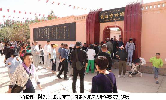库车王府景区副经理朱新娟介绍说:“库车王府景区在“十一”期间,每日接待游客量大概在6000到7000人,比七八月份旺季的时候还要多20%左右,面对这样一个情况,我们库车王府做好各项服务工作,包括增设售票窗口,安排人员维持秩序引导游客去参观,让游客高兴而来,满意而归。”(库车市融媒体中心:樊凯、王雪妮、王建强)