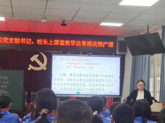 2023年10月10日上午腰街中心学校组织三至六年级的教师到腰街完小听课堂教学改革模式推广课。学校党支部书记、校长根据学校制定的课改方案在六四班上了两节精彩的语文课;支部宣传委员、教导主任在四二班上了一节数学课。