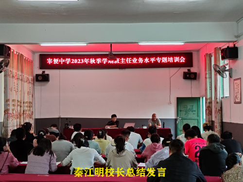 为了全面提升班主任队伍素养,落实新时代“立德树人”根本任务,提升班主任的业务水平,明确班级管理方向,助力班主任快速成长,让班级工作更有针对性和实效性。10月18日下午,从江县宰便中学在大会议室开展2023年秋季学期班主任业务水平专题培训会。学校班子、全体班主任、35岁以下的全体教师参加。