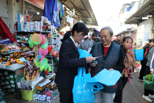 普法活动进集市,法治宣传入民心。在人群集中地,干警们从老年人权益保护的角度出发,结合典型案例,以案释法,以通俗易懂的语言就防范电信诈骗、老年人权益保障等知识向老年人进行系统、详实地讲解,现场解答了老年人们的法律困惑,发放了《中华人民共和国老年人权益保障法》、防范诈骗等宣传手册,提醒老年人要警惕高利诱惑,做到不轻易透露个人信息,守护好自己的“钱袋子”,同时懂得运用法律武器保护自身的合法权益。