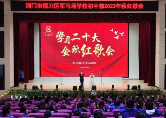 青春歌飞扬,红歌颂祖国。为深入贯彻落实党的二十大精神,丰富校园文化生活,激发同学们爱党、爱国的深厚情怀。近日,湖北省荆门市掇刀区军马场学校初中部在未来剧院举行了以“学习二十大 金秋红歌会”为主题的校园红歌会,唱响红色歌曲,传承红色基因,凝聚奋进力量。
