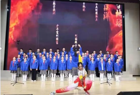 一首红歌一面旗,一支红曲一把号。红色歌曲传唱,唱的是一首歌,植入的是一颗爱国心。同学们个个精神抖擞,意气风发,用嘹亮的歌声、真挚的情感,演唱了《红星闪闪》、《祖国有我》、《歌唱祖国》、《我的中国心》、《保卫黄河》、《团结就是力量》、《天耀中华》等经典红色歌曲,唱出了蕴藏在红歌中的激情与梦想、使命与担当。