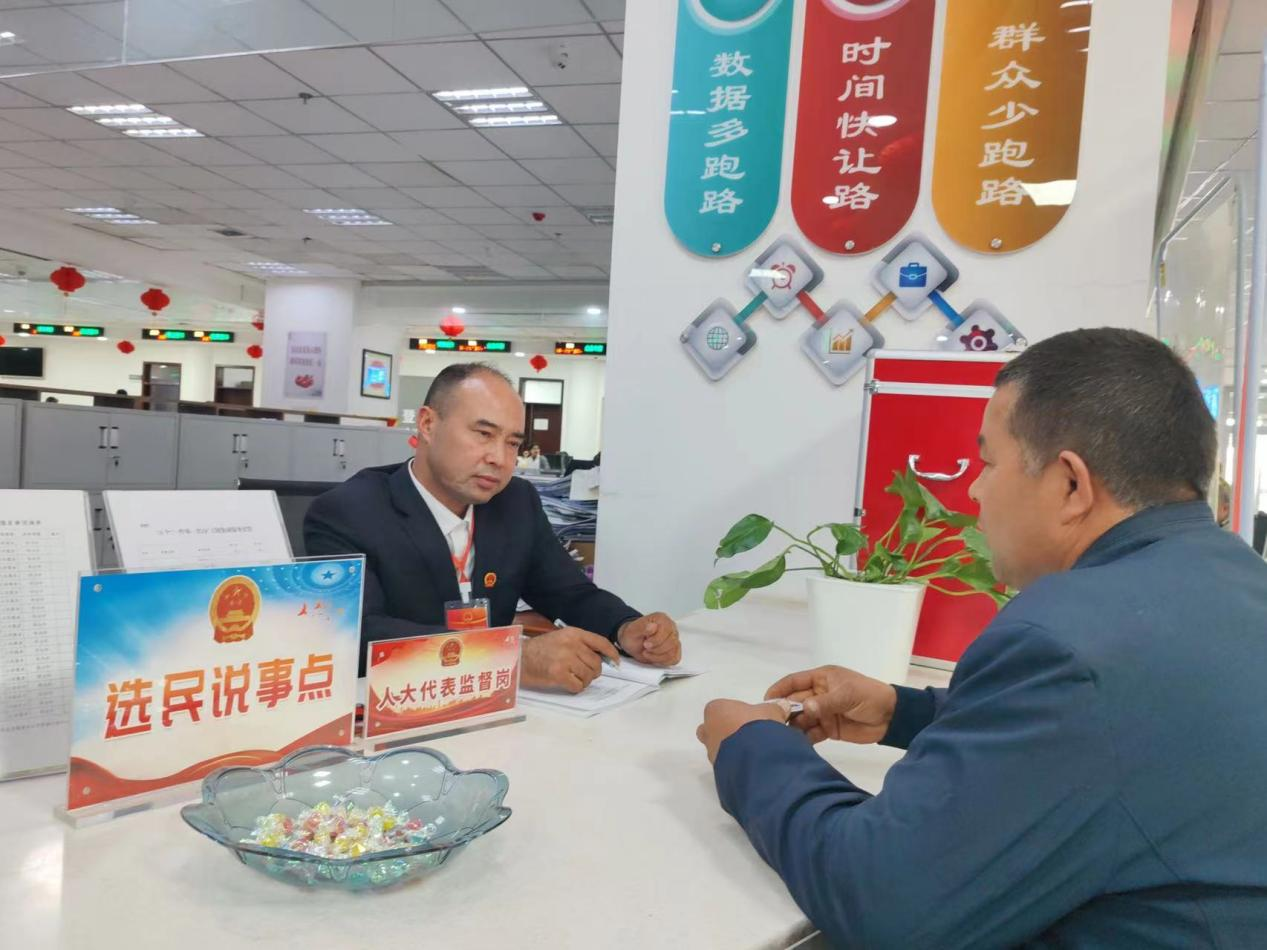 自今年7月开始,库车市人大常委会便在选民群众关注多、需求大、问题突出的基础上,探索创设“选民说事点”,经多方协调、精心考量,先后选取人流量大的信访局、政务服务大厅设立“选民说事点”。5名常委会班子成员常驻信访局说事点,参与调解、收集意见建议,247名市级人大代表每周一轮流在政务服务大厅接待选民。