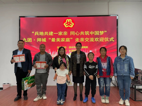欢迎仪式上,九团党委常委、副团长、妇联主席杨玉萍,拜城县妇联党组书记、主席阿孜古丽·吐尼牙孜就此次活动分别作了讲话。活动指出,以后要常态化开展形式多样的活动,共同促进兵地共建、文化交流,增进各族群众的深厚友谊和民族团结。随后,10户“最美家庭”观看了九团宣传片,举行了九团·拜城“最美家庭”结对仪式,两地“最美家庭”互相做自我介绍、互赠礼物并签署结对连心卡。