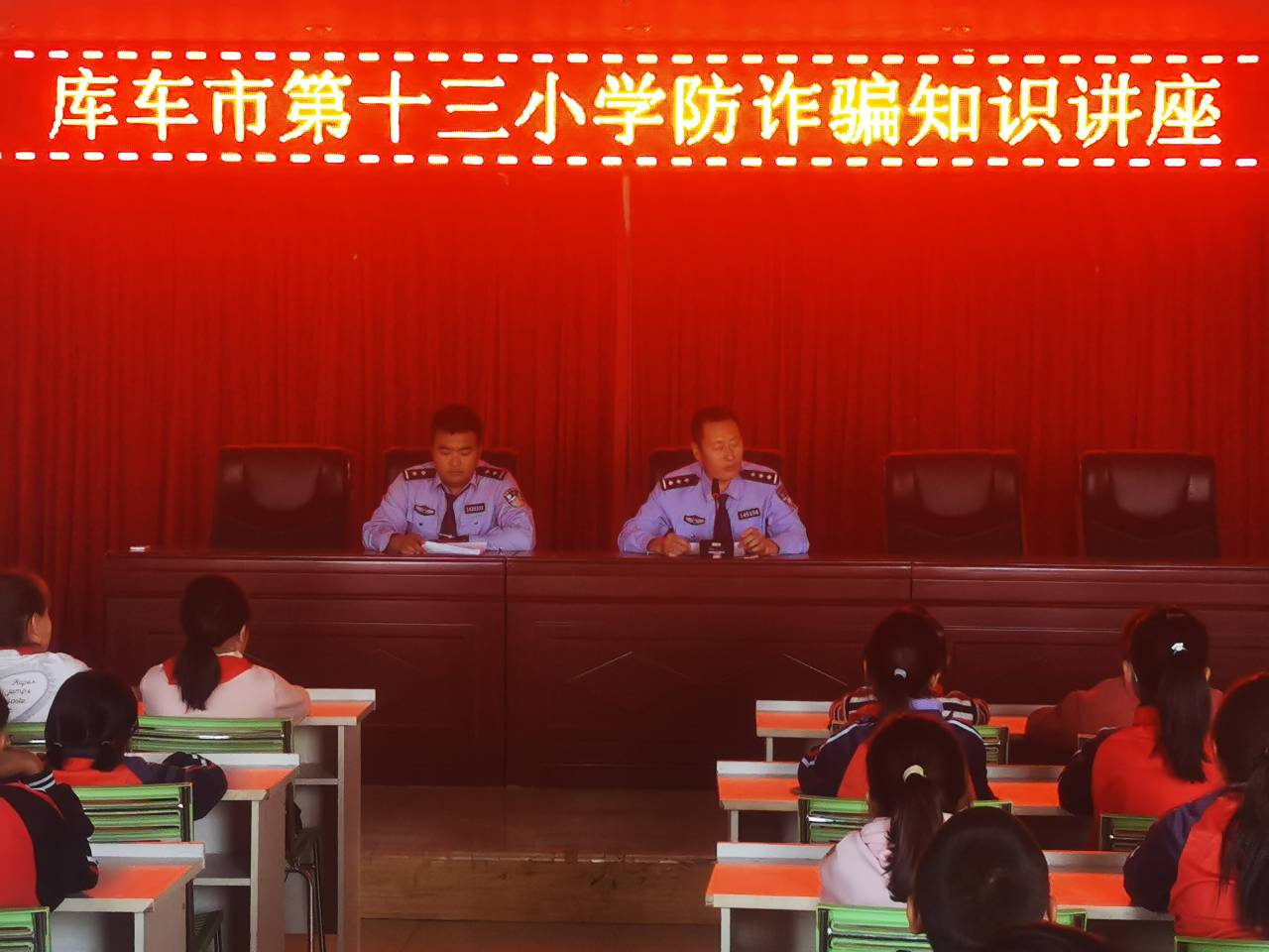 为进一步提高广大师生的反诈意识,增强校园师生对电信网络诈骗犯罪的辨别能力和应对能力,打造平安、和谐校园环境。11月1日下午,库车经济技术开发区派出所民警走进新疆库车市第十三小学开展“反诈宣传进校园,筑牢校园安全墙”知识讲座,为广大师生上好反诈第一课。