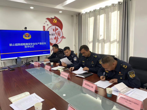 图一:现场签订《禁止超限超载确保安全生产责任书》