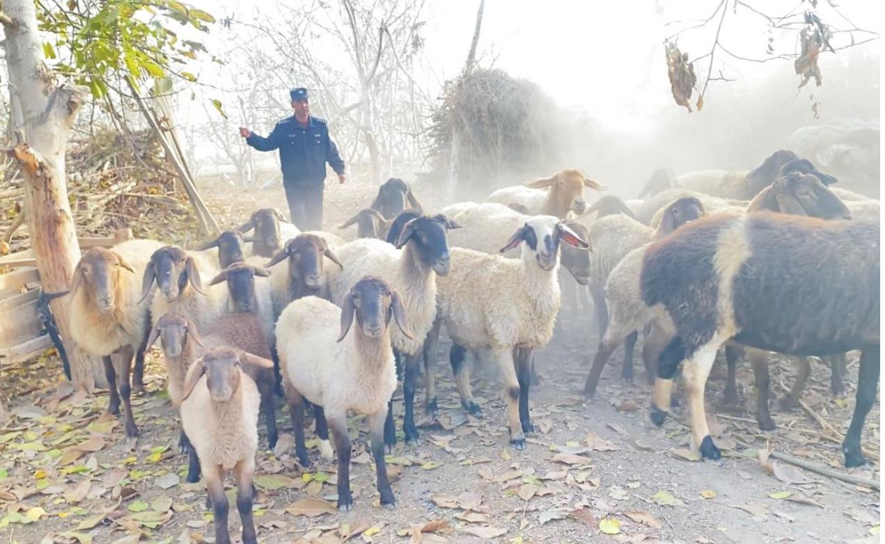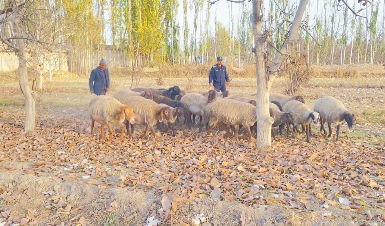 原来,11月16日早上9时许,沙雅县公安局英买力派出所央艾日克村警务室接到群众报警称“羊圈里29只羊半夜丢失,请求帮助”。民警阿力木江·吐尼亚孜接到警情后第一时间到达现场,经勘验,排除盗窃嫌疑。根据勘验中发现的羊蹄印,判断羊群已经走至英买力镇和新和县交界处的戈壁滩。明确寻找方向后,民警立即组织警务室、村委会与失主分组对红旗镇、新和县、英买力镇交界处戈壁滩开展搜寻工作。最终,历时九小时,于当日下午18时许,在沙雅县英买力镇墩买力村与新和交界隔壁区域,将依比热西·卡热走失的羊群找到。