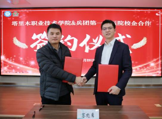 11月28日下午,塔里木职业技术学院党委副书记、院长周志国一行8人,来到第一师医院签署校企战略合作协议,正式揭牌成为塔里木职业技术学院教学医院。第一师医院党委副书记、院长陈大进及部分院领导、科教科、护理部、康复医学科等科室有关人员参加座谈会。会议由第一师医院党委委员、副院长吴燕主持。