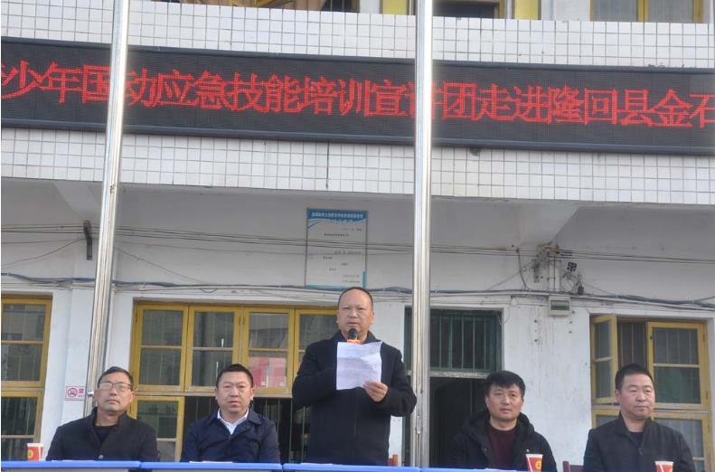12月5日上午,湖南省国防应急技能培训宣讲演示活动在隆回县金石桥镇中心学校拉开帷幕。湖南省青少年国防应急技能培训活动组委会办公室主任、中国青少年国防体育发展联盟湖南工作部主任、省救援协会常务副会长文勇作了重要讲话,湖南省人防应急技能培训组委会办公室副主任李向阳,隆回县国动办办公室主任廖旭民全程参与组织开展培训。
