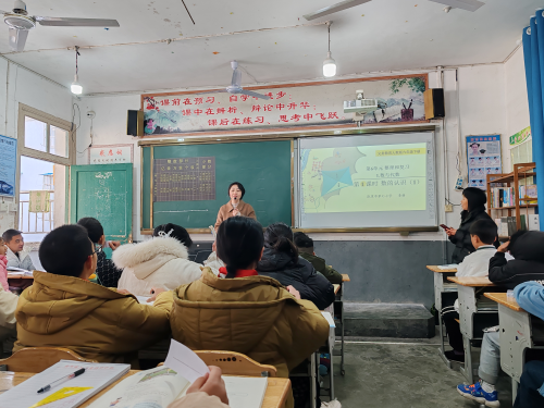 图一、2023年12月21日,凯里市第七 小学名师李妍在从江县谷坪中心小学上数学复习展示课