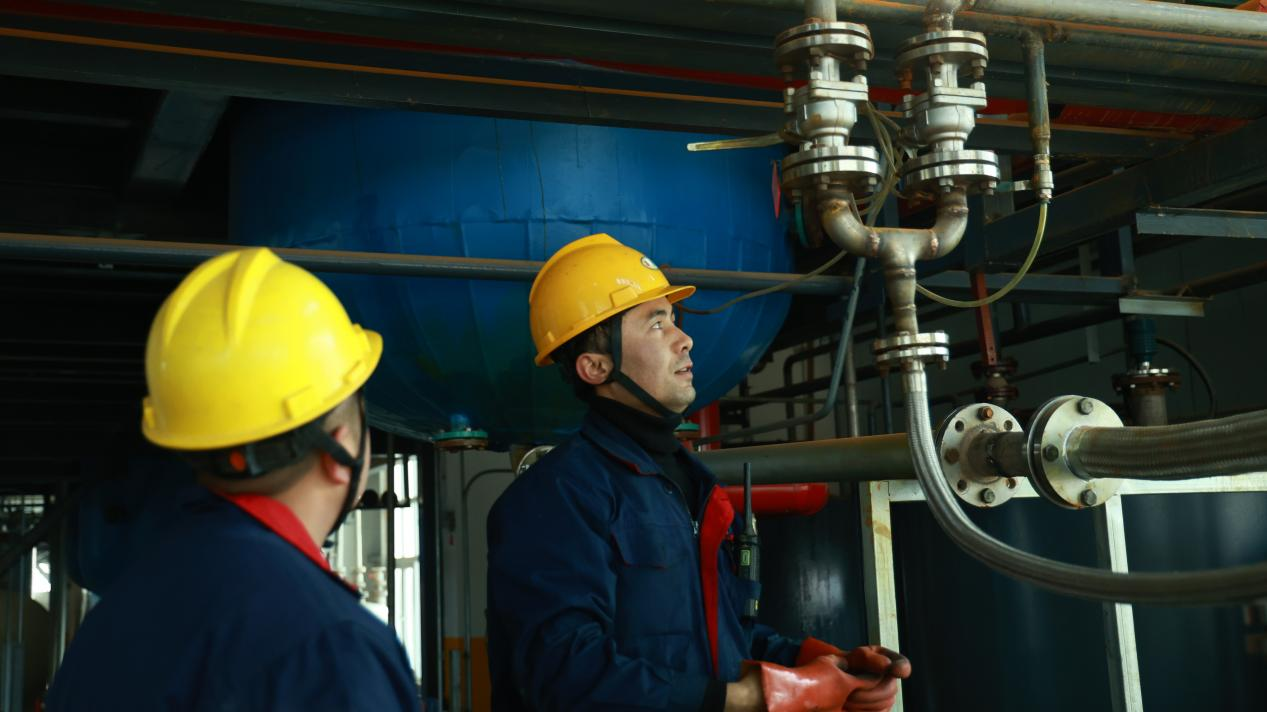 12月28日,记者走进新疆天环新材料科技有限公司车间,工人们正在加紧生产一批新的订单,艾麦尔·艾海提与同事正一起查看设备运行情况。作为新来的操作工人,艾麦尔·艾海提现在已经熟练掌握多项操作技能,工资也比之前高了很多。