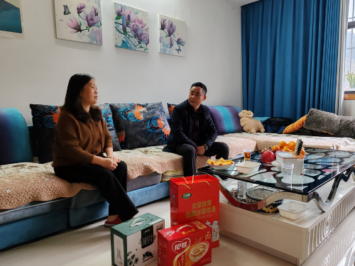在慰问中,慰问组分别与驻村干部和家属亲切交流,详细了解当前驻村工作开展情况和生活情况及急需帮助解决的实际困难问题,对他们的辛勤付出予以充分肯定和高度赞扬,感谢家属对驻村干部的理解和对乡村振兴事业的支持,感谢驻村干部“舍小家为大家”,在乡村振兴工作中履职尽责和默默奉献。表示将继续关心和关注驻村干部及其家庭的生活情况,竭尽所能帮助解决驻村干部家属工作和生活中遇到的困难和问题。希望驻村干部要严格执行上级的工作部署要求,切实沉下心融入、沉下身办事,沉下力攻坚,以驻村干部为民办实事为载体,主动深入群众、密切联系群众、热情服务群众,不辜负党组织的培养和信任。希望家属一如既往地支持乡村振兴和退役军人工作,持续当好“贤内助”,撑起“半边天”。并向他们送上节日慰问品和新年祝福。