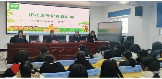 随后,钱珊同志围绕《用法治守护你的青春》主题,对年满12、14、16周岁的未成年人刑责范围进行强调说明,以案释法、以案学法,由浅入深地向同学们讲解了防校园欺凌、防性侵及道路交通安全相关法治安全知识。