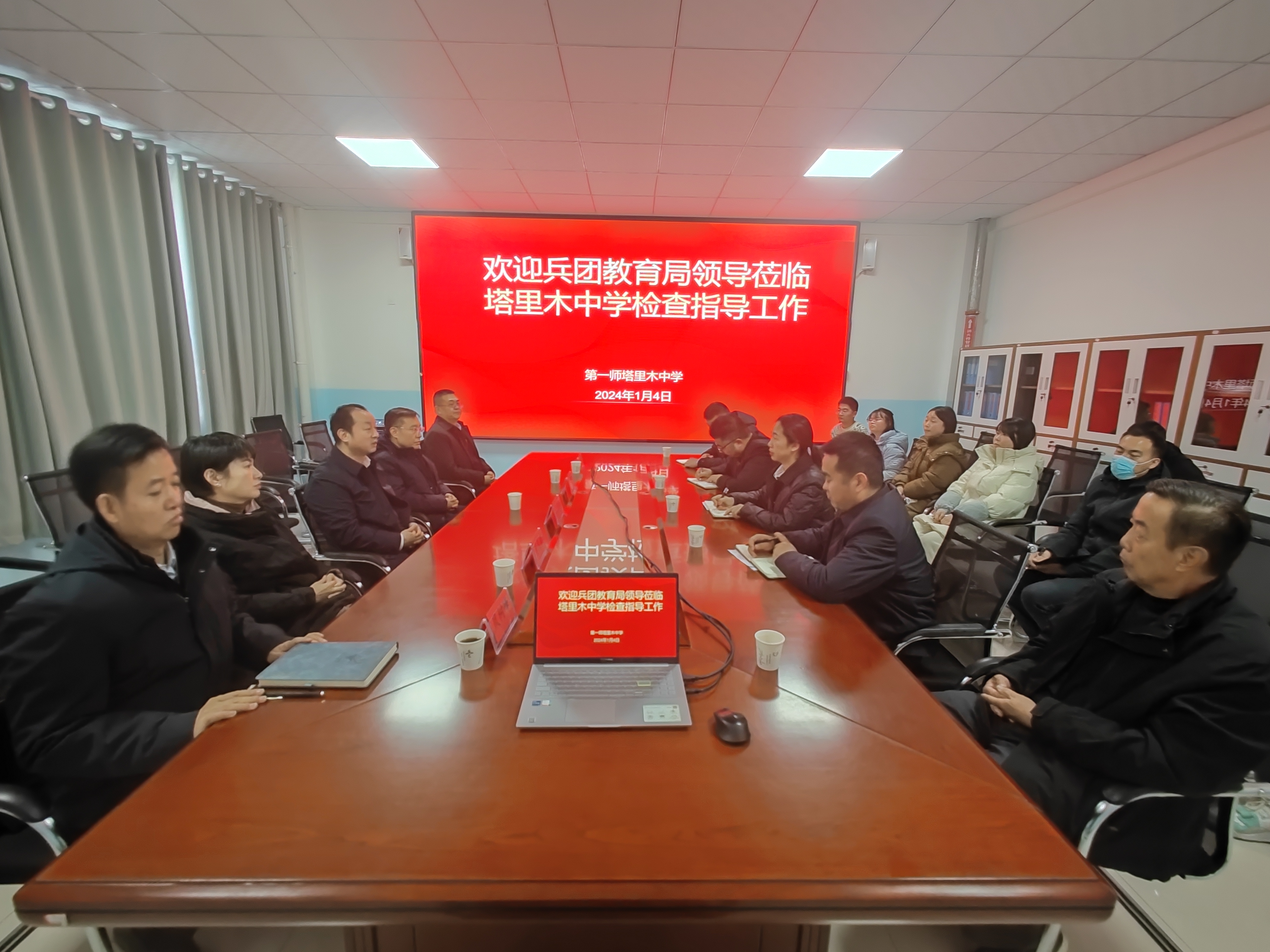 1月4日,兵团教育局党组成员、副局长蒋宏潮,兵团教育局党组成员、副局长,大学城管委会副主任许成一行赴第一师塔里木中学调研,第一师副师长阿拉尔市党组成员肖晨曦,师市教育局党组书记、局长凤树峰陪同调研。