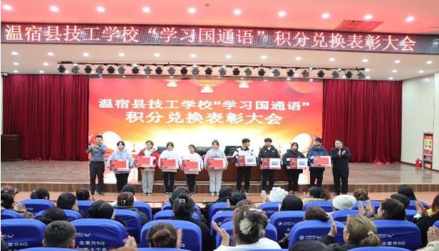 随后,县技工学校组织学生和学生家长在校报告厅开展《温宿县技工学校“学习国通语”积分兑换表彰大会》,校领导对在学校学习国家通用语言文字期间表现优异的学生进行表彰奖励,对获得表彰的同学表示了热烈的祝贺,同时也对本学期教育教学工作进行了全面分析,并激励同学们知不足而奋进,在下学期的学习中善于思索、勤于练习、甘于付出、敢于吃苦,全体铭志师生携手努力,定能再创佳绩,共赴辉煌!