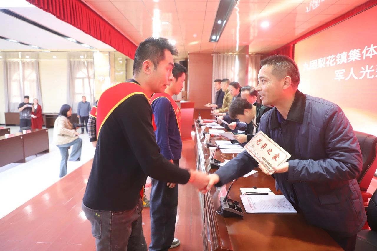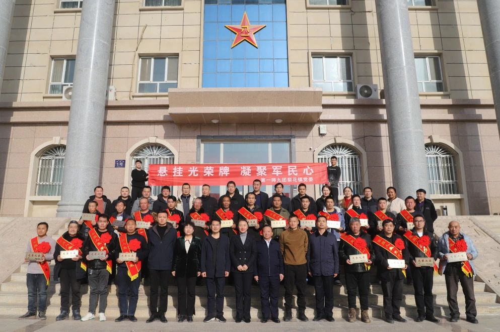 1月17日,九团梨花镇举行集体所有制连队退(现)役军人家庭光荣牌颁发仪式。九团党委书记、政委蒋晓燕作重要讲话,九团党委副书记、团长刘光辉主持会议,九团党委副书记、副政委殷胜国,九团党委常委、副团长杨玉萍,九团党委常委、人武部部长、政法委书记李浩明,九团党委常委、副团长杨祺出席会议,机关各科室负责人,十个集体所有制连队第一书记、党支部负责人和负责退役军人服务工作的连队两委共同参加了颁发仪式。