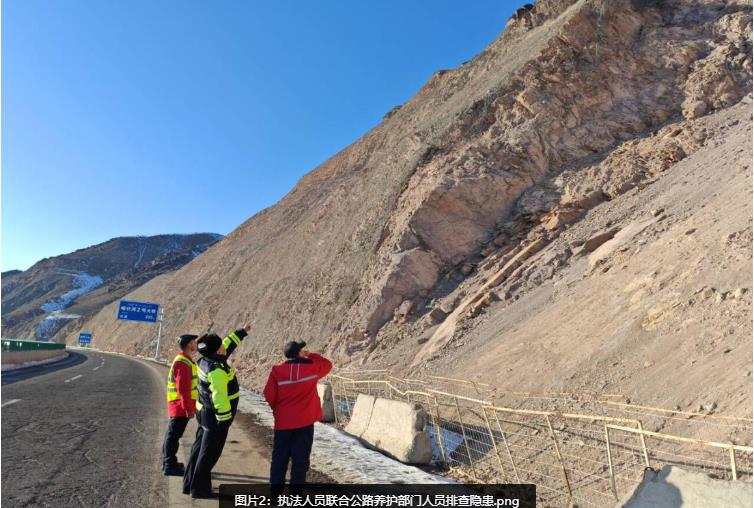 二是严“防”,加强隐患排查治理。为切实加强春运期间安全生产工作,尼勒克执法大队执法人员联合公路养护部门组织开展道路交通安全隐患排查整治行动,对辖区国道578线、省道315线等重点路段、桥梁涵洞等公路设施进行了安全隐患排查,发现隐患点立即反馈整改,最大程度消除安全隐患,确保公路安全畅通。