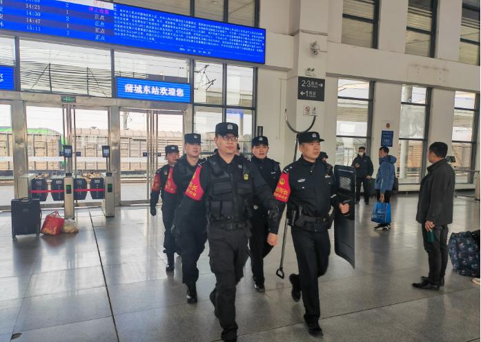为保障春运平安,西安铁路公安局延安公安处特警支队增强武装巡逻力量,加大站区巡控和威慑力度,全力维护平安、有序、和谐的站车秩序。