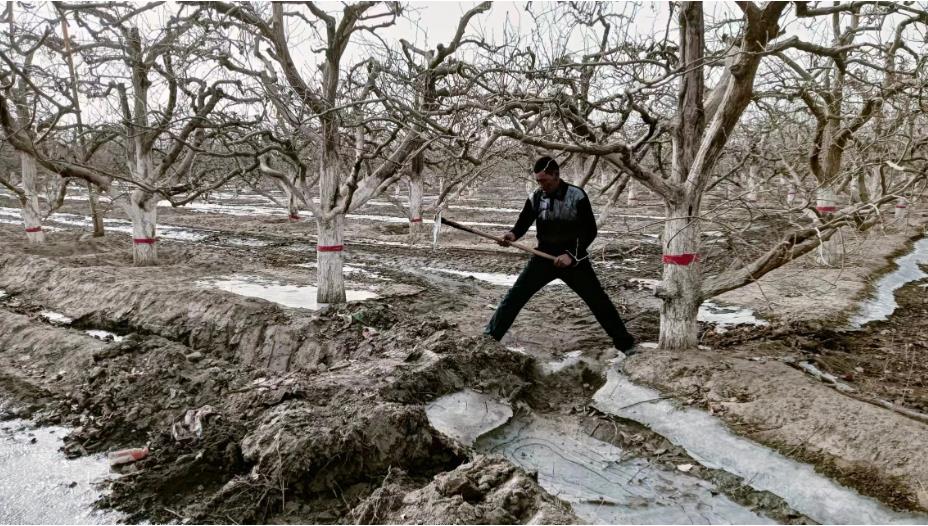 “我家15亩红枣地和50亩白地不到一天的时间就灌完了。”2月19日,阿克苏市喀拉塔勒镇萨提村村民麦麦提·吐尼亚孜看着自家的地“喝饱了”春水高兴地说。