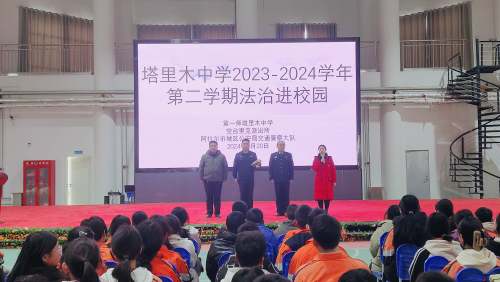 为切实做好“开学第一课”法治安全教育工作,提高学生法律意识,预防未成年人犯罪,第一师塔里木中学邀请九团司法所胡鹏超警官开展“开学第一课”法治教育专题讲座活动。