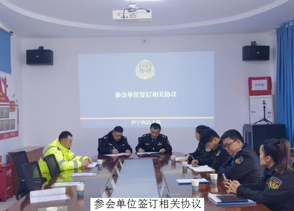 随后,伊宁执法大队与参会单位签订相关联动协议,并达成以下共识:一是要加强公路巡查,积极整合力量和资源,充分发挥各单位的职能优势,强化行政执法、公路养护、交警部门的协同联动,从源头上预防各类交通安全事故的发生;二是加大超限超载等违法行为打击力度。要加大联合执法力度,对超限超载、私自增设非公路标志、私自增设平面交叉道口等违法行为重拳出击、严管重罚;统筹调配各部门联合执法频次,提高管控效能。三是深化路面执法联勤联动机制,进一步加强信息沟通、强化协调配合、加强区域联动、履行好各自职责,推动联勤联动工作机制向纵深发展。