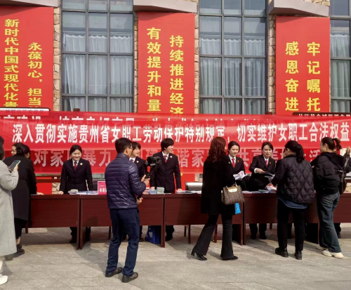 3月7日上午,县总工会围绕工会职能,联合县妇联、县检察院、县司法局等部门在銮里会展中心广场开展女职工普法宣传活动,面对面为全县广大女职工群众提供法律咨询服务,重点宣传《贵州省女职工劳动保护特别规定》《妇女权益保障法》等法律常识,进一步提升女职工维权意识。活动现场共发放宣传资料近2000余册。