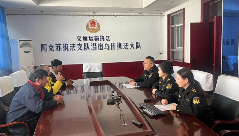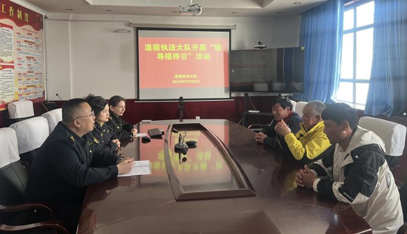 为深入落实执法为民实践活动的有关要求,进一步增强执法队伍与社会群众良好互动,面对面解决群众关心问题,3月26日,阿克苏执法支队温宿执法大队组织开展“领导接待日”活动,活动邀请了辖区部分运输企业代表和社会群众参加,温宿执法大队党支部书记热情接待并与辖区企业代表和社会群众进行面对面交流。