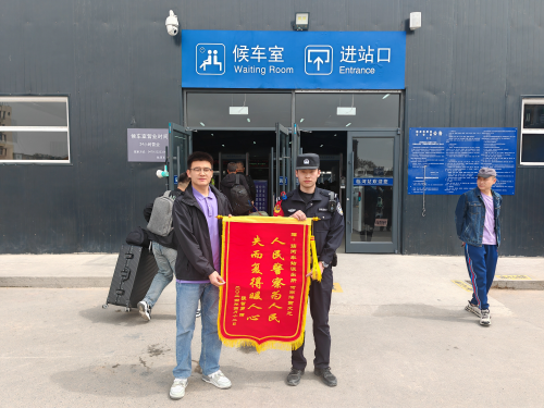 4月22日,王女士的家属来到临河车站,清点包内物品无误后,拿回王女士的背包,并为民警送来锦旗表示感谢。(通讯员:包头铁路公安处 宋艺轩)