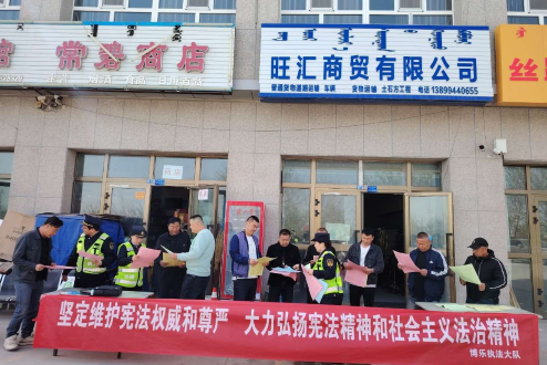 为深入学习贯彻习近平法治思想,持续推进法治政府建设,大力弘扬宪法精神,维护宪法权威,在自治区第二十一个“宪法法律宣传月”期间,博乐执法大队紧扣“坚定维护宪法权威和尊严,大力弘扬宪法精神和社会主义法治精神”主题,组织开展宪法学习宣传活动。