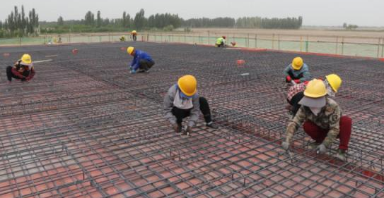 4月29日,在库车市哈尼喀塔木乡供水站供水保障工程施工现场,容量为4000立方米的蓄水池池顶,20余位工人正分别忙着绑扎或焊接钢筋,蓄水池旁自动化信息控制中心、加压泵站、消毒间及物资储备间等管理用房框架已搭建完成,供水站初具雏形。远处,输水管网主干沿线的管道挖掘和回填、水管焊接和铺设正有序施工。