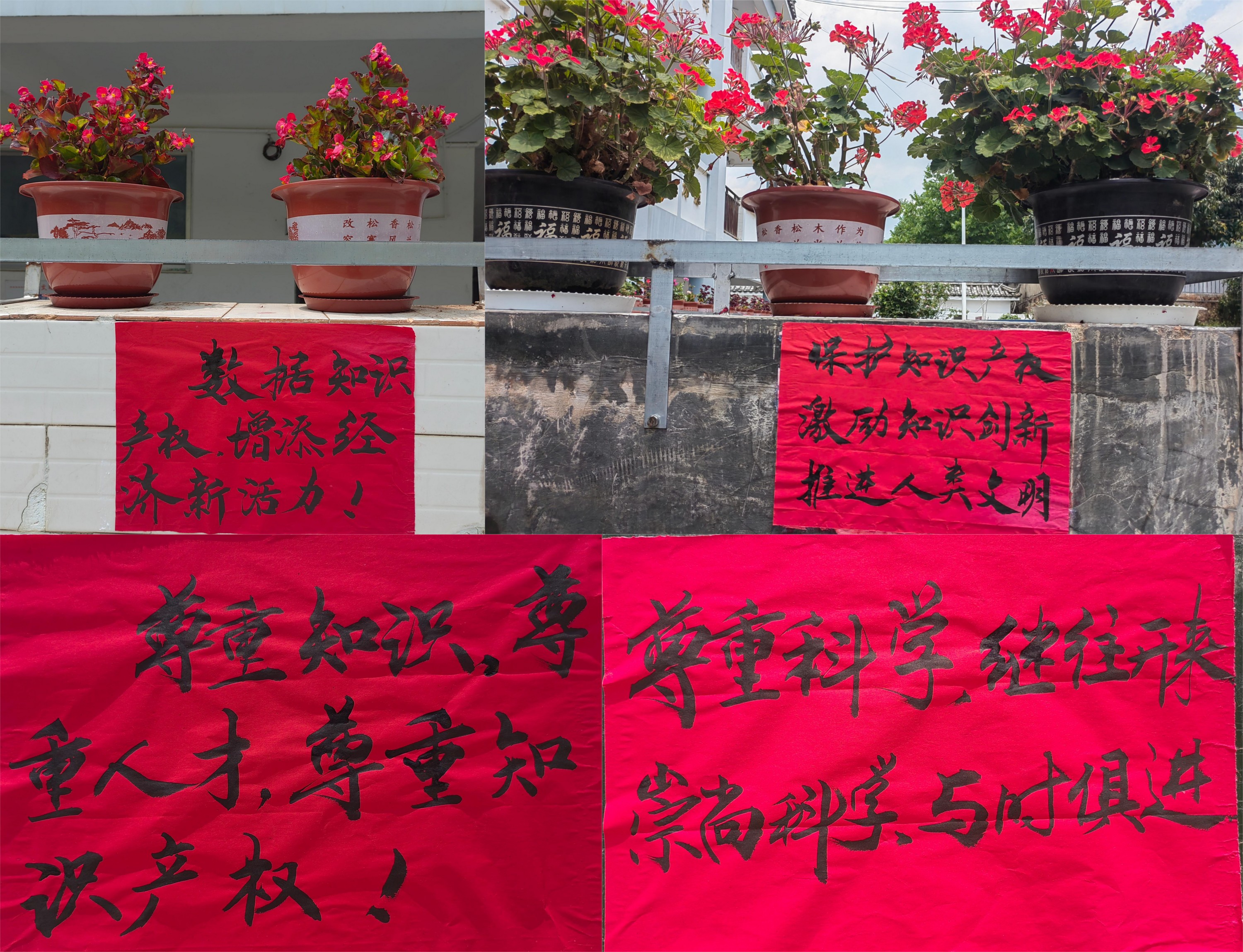 粘贴宣传标语,营造浓厚氛围。积极向上的宣传标语激发了师生对知识产权宣传的积极性,拓宽了师生对知识产权的认知度,提高了师生对知识产权的保护意识。