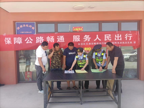 在路政宣传月期间,为进一步加强公路路政管理和治超工作,优化提升公路管理和服务水平,阿克苏执法支队温宿执法大队积极行动,以“公路人人护、路畅心舒畅”为主题开展了“路政宣传月”走访公路沿线企业活动。