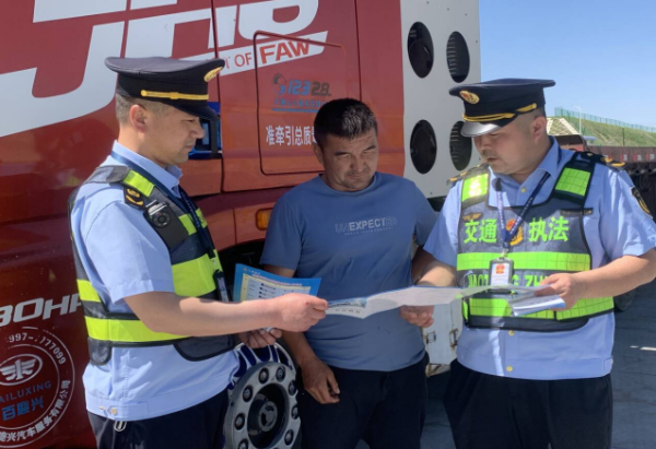 三是坚持服务为先,护航安全运输。执法人员深入辖区道路运输企业及货物源头企业,与企业代表、驾驶员进行交流,了解企业运输中存在的难题,并向运输企业人员发放宣传资料,重点宣传《中华人民共和国公路法》《公路安全保护条例》《道路交通安全法》等相关法律法规,倾听企业对交通执法工作意见和建议,现场指导、协助承运人办理许可手续等,在货运源头企业公告栏张贴《公路货运车辆超限超载认定标准》宣传告示,提醒广大货车驾驶员要依法规范装载,增强交通安全意识和法治意识。