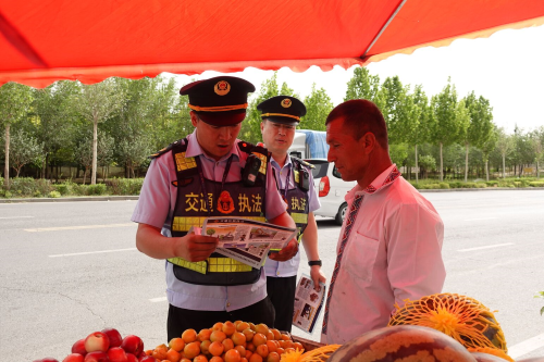 依托重点区域,开展公路宣传。2024年5月22日,由阿克苏执法支队组织,温宿执法大队、乌什执法大队、阿克苏市公安局交警大队G208中队组成的联合宣传队伍,在G580线K0+500公里开展集中宣传,通过面对面讲解、设立咨询台、摆放展板、发放宣传册、悬挂横幅标语等方式,结合真实案例和热点舆情,向群众宣传超限超载、利用公路摆摊设点、擅自增设道口、占用公路乱堆乱放、公路两侧违法建房等违法违规行为带来的危害,提高人民群众爱路护路的法律意识,引导公众自觉维护“安、快、畅、美”路域环境。
