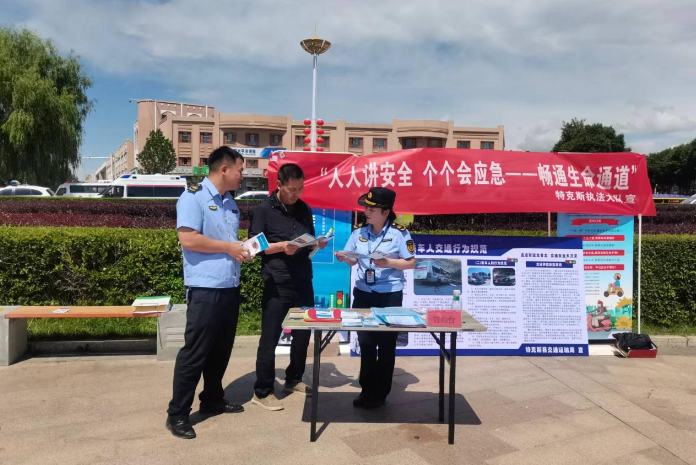 今年6月是第23个全国安全生产月,为进一步增强辖区群众安全意识,6月14日特克斯执法大队围绕“人人讲安全 个个会应急-畅通生命通道”主题,携手多部门在特克斯县太极坛广场开展了“安全宣传咨询日”活动。