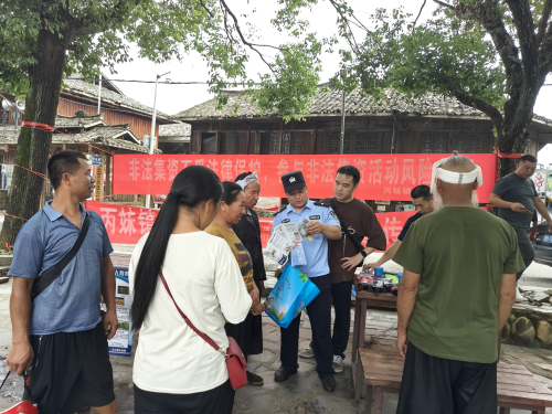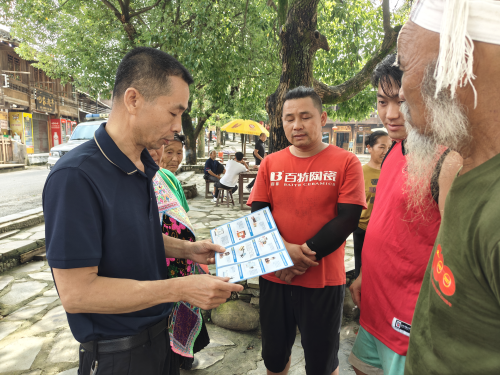 在岜沙村旅游广场,宣传人员通过悬挂横幅、摆放禁毒知识展板、发放禁毒宣传资料、设立普法咨询台现场答疑等方式进行,向群众讲解毒品犯罪给社会、家庭、个人造成的极大危害,提醒群众要增强防范意识,自觉远离毒品,引导群众切实提升对毒品的戒备力、防范力、警惕性,鼓励群众做知毒、拒毒、禁毒的践行者和宣传者。期间同步开展反有组织犯罪法、防范电信网络诈骗、防范非法集资、反邪教、打击传销等与人民群众生活密切相关的法律法规。