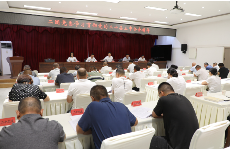 二团把学习贯彻党的二十届三中全会精神与深入贯彻习近平新时代中国特色社会主义思想紧密结合起来,持续书写推进中国式现代化的时代新篇。与习近平总书记关于新疆和兵团工作的重要指示精神结合起来,谋深谋实贯彻落实举措,忠实履行维稳戍边职责使命。与团镇发展实际结合起来,坚持稳中求进工作总基调,紧盯经济发展不松劲,高标准高质量推进各项工作。狠抓安全生产责任制落实,积极防范化解重大风险,切实保障和改善民生。持续深化全面从严治党,对标补缺补差,全力攻坚冲刺,以各板块、各条线的比学赶超支撑团镇发展的争先进位,以实干业绩检验学习贯彻成效。