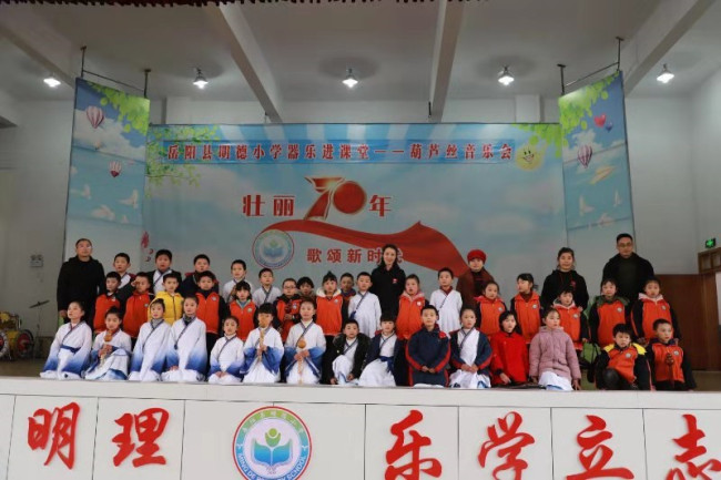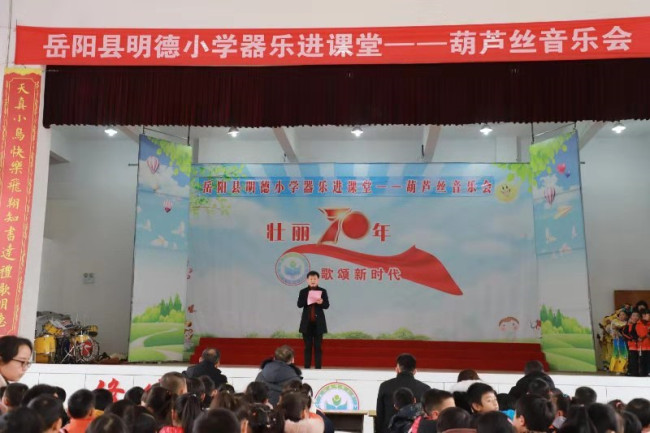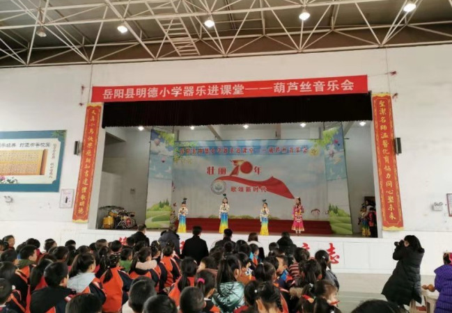 清风网讯(通讯员 :宁平)12月31日下午,岳阳县明德小学举行了首届器乐进课堂——葫芦丝音乐会,展示一年级500多名学生葫芦丝演奏教学成果,喜迎新年。