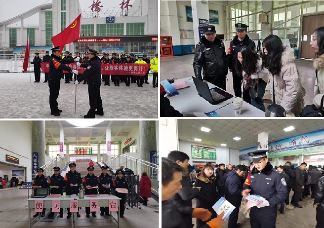 启动仪式结束后,榆林所还组织民警在候车室设置了“便民服务台”为旅客提供热水、胶带、咨询等服务活动。同时向出行旅客发放安全常识宣传单,营造了良好的宣传氛围。