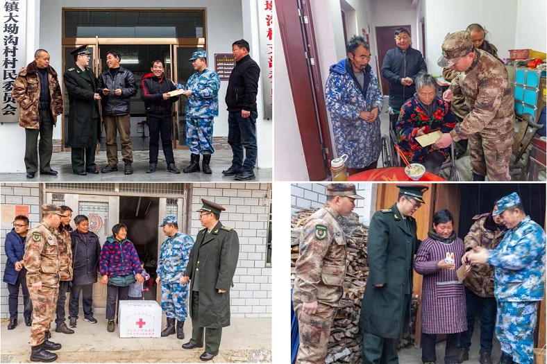 1月15日下午。雨雪交加,寒风刺骨,一群穿着军装的人拿着慰问大礼箱和慰问金走村串户给湖北英山县草盘地镇大坳沟村和槐树坪村的20个贫困户“送年礼”,开展春节慰问活动。每到一家,村民都紧紧拉着县人武部长石俊杰和政委贺志东的手,连声说:感谢共产党,感谢解放军。冒着雨雪给我们送来了过年物资和过年费。