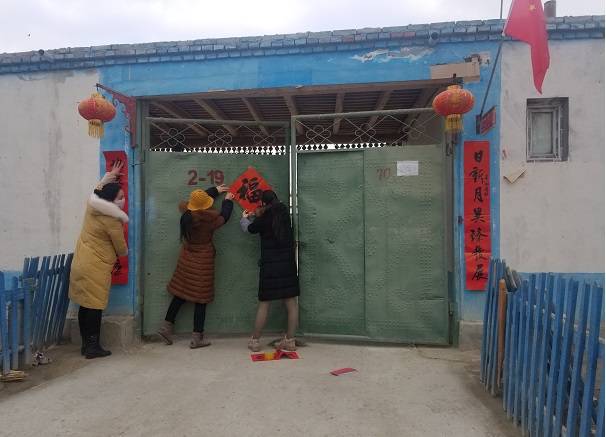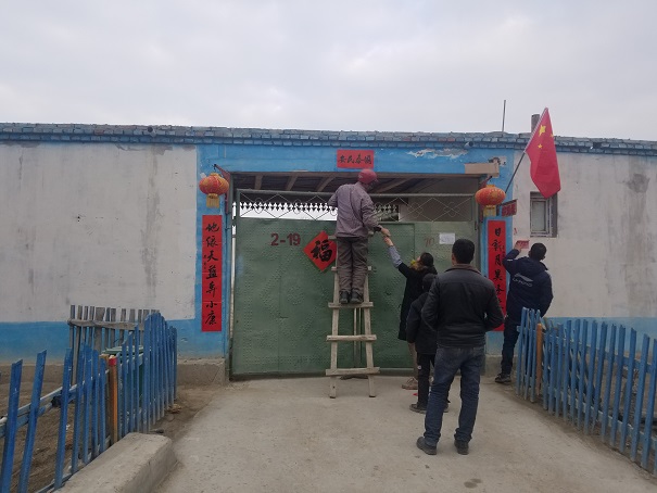 在阿瓦提县英艾日克镇驻托玛村工作队队员,走村串户的开展送春联活动。一边为老乡们宣传党的十九届四中全会精神和党的惠民政策,一边为老乡翻译春联的内容,讲解贴春联的传统意义,同老乡们一起贴上春联、福字。