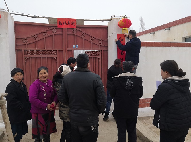 清风网讯 (自治区烟草专卖局:彭加录)1月21日上午,自治区烟草专卖局驻拜城县布隆乡欧吐拉布隆村工作队队员、乡下沉干部不约而同来到村民家中,与他们一起贴春联,贴福字,挂灯笼和彩旗。一时间,乡村街道上、喜庆的灯笼、贴着各种祝福语的春联和大红的“福”字映入眼帘,家家户户变得红红火火,显得格外喜庆。