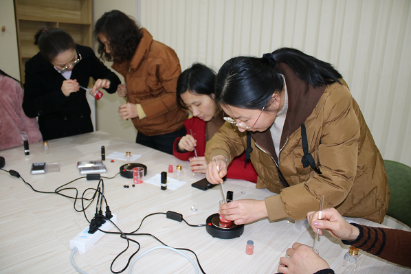 清风网讯 (通讯员:许琳薇 崔寿伟)为传播健康美丽的生活理念,丰富辖区女性业余生活,1月21日下午, 江苏省无锡市新吴区梅村街道泰伯一社区开展口红DIY制作活动。