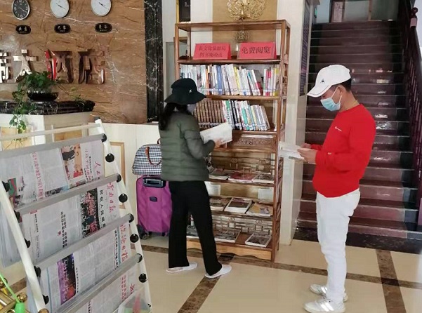 清风网讯(耿马自治县文化和旅游局 李名丽)走进耿马自治县宏伟大酒店,只见古檀色的书柜和白色报刊架立于酒店大厅中央,各类图书报刊和跳绳、跳棋等体育器材格外引人注目。因疫情滞留的重庆游客陈先生和家人来到大厅做好例行体温检测后,饶有兴致地挑选了几本书籍,还下起了跳棋。“我们一家四口年初到耿马自驾游,没想到疫情这么严重,住到这个酒店后,食宿健康也有了保障。现在还有这个图书流动点,这样贴心的服务,让我们在非常时期感受到了家的温暖,感谢耿马人民!”陈先生和家人感慨道。
